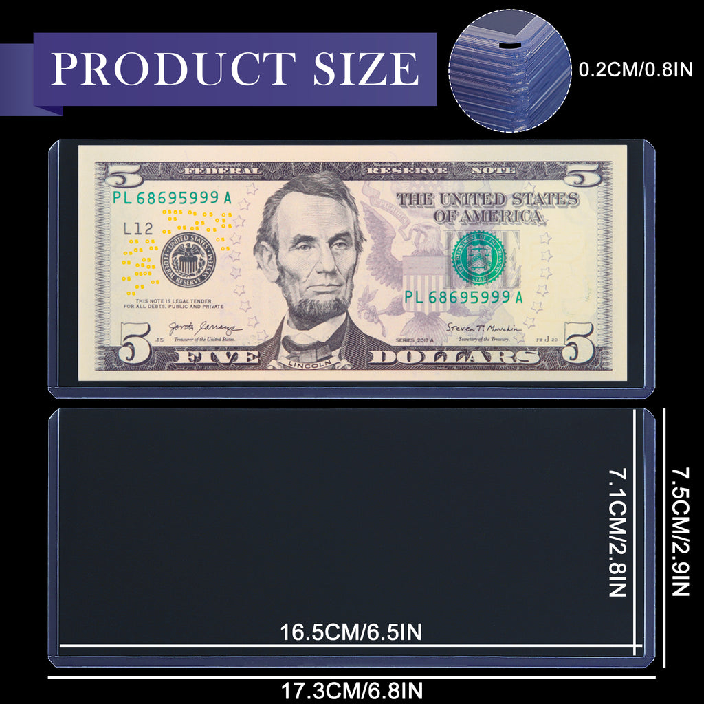 Banknote Topload Holder - 80 Pack - 173 X 75 MM [ 6.8 X 2.9 INCH ] - PN03L80